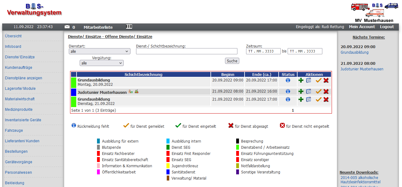 Speziell für die breite Mehrheit der Mitarbeiter, die nicht mit der Sachbearbeitung von Diensten und Einsätzen betraut sind, wurden einfach zu bedienende und übersichtlich gehaltene Funktionen in das System integriert. Hierzu zählen beispielsweise Funktionen für offene (zu besetzende) Dienste, eine Übersicht über die eigenen Dienste sowie eine persönliche Statistikfunktion, in welcher die erbrachten Dienststunden und falls anwendbar, die jeweilige Vergütung nach Dienstart aufgeführt sind.